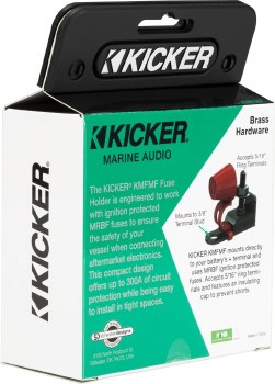 Overview: The Kicker Marine Master Fuse Holder (KMFMF) is designed to provide a fuse-protected battery connection for amplified marine audio applications (fuse sold separately). The KMFMF can be attached to battery power terminals up to 3/8" in diameter, and features a 1-5/16" tall threaded post that can accommodate both an MRBF fuse and a power wire ring-terminal 5/16" in diameter. An attached rubber cap provides insulated protection against objects coming in contact with the terminal post.