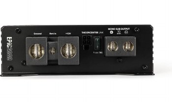 Epicenter Link: The AudioControl EPIC2000 subwoofer amplifier features a 4-pin Epicenter Link port that lets you connect a compatible AudioControl EPICENTER Digital Bass Restoration Processor (sold separately), providing power, ground and turn-on connections for the processor. The Epicenter Link output is protected by a 1A mini fuse installed in the amp chassis.